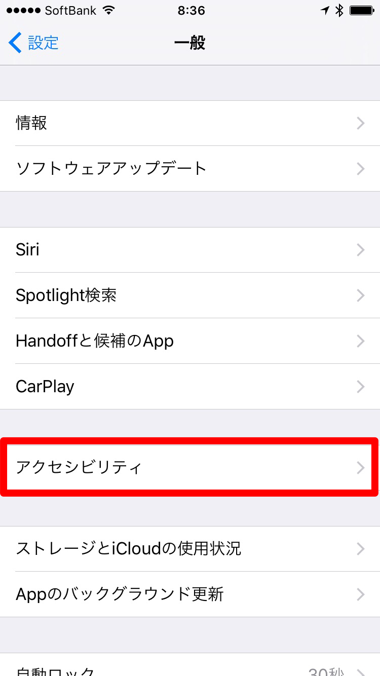 4 「アクセシビリティ」画面を開いたら、下のほうへスクロールさせて「簡易アクセス」項目を探します。