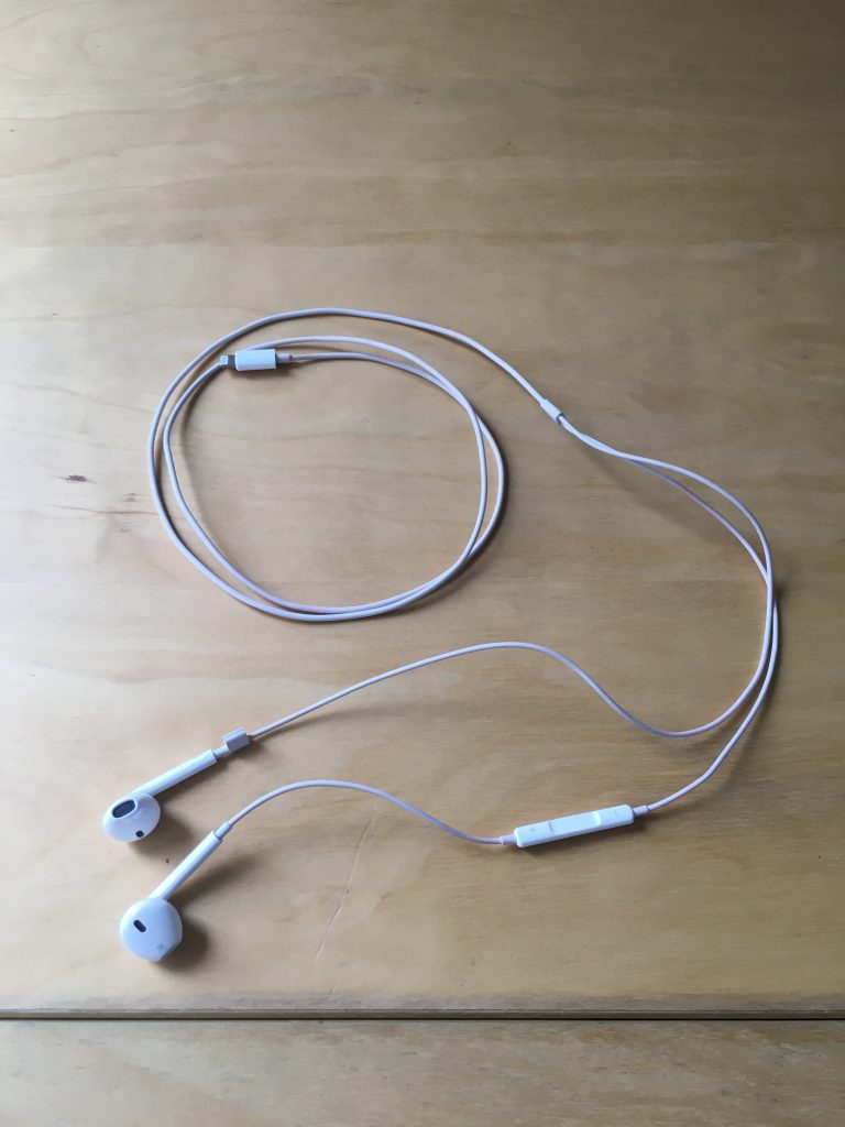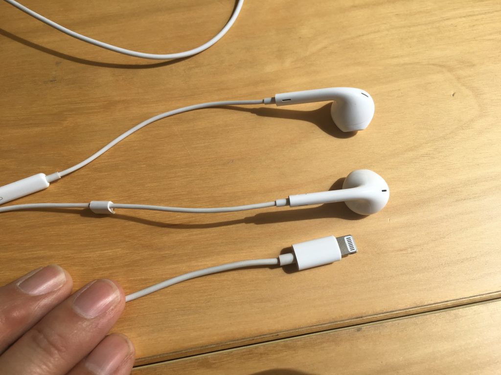 iPhone 7 Plusに付属していたLightening端子のイヤホンケーブルなんですが、充電したら音が聞けないのはやはり不便なので、使わずに紙袋の底に2カ月ほど放置していました。