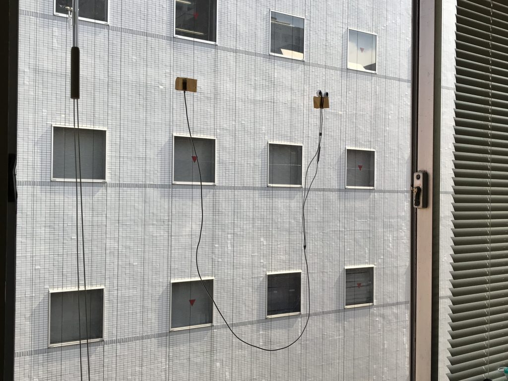 下の写真のような感じに、テープでプラスチック部分を固定して、日当たりがよさそうな窓に貼り付けてみました。