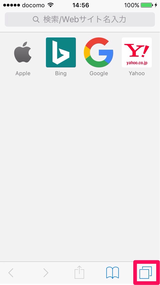 まず、「Safari」を立ち上げ、右下の「タブ」アイコンをタップして、タブの一覧を表示します。