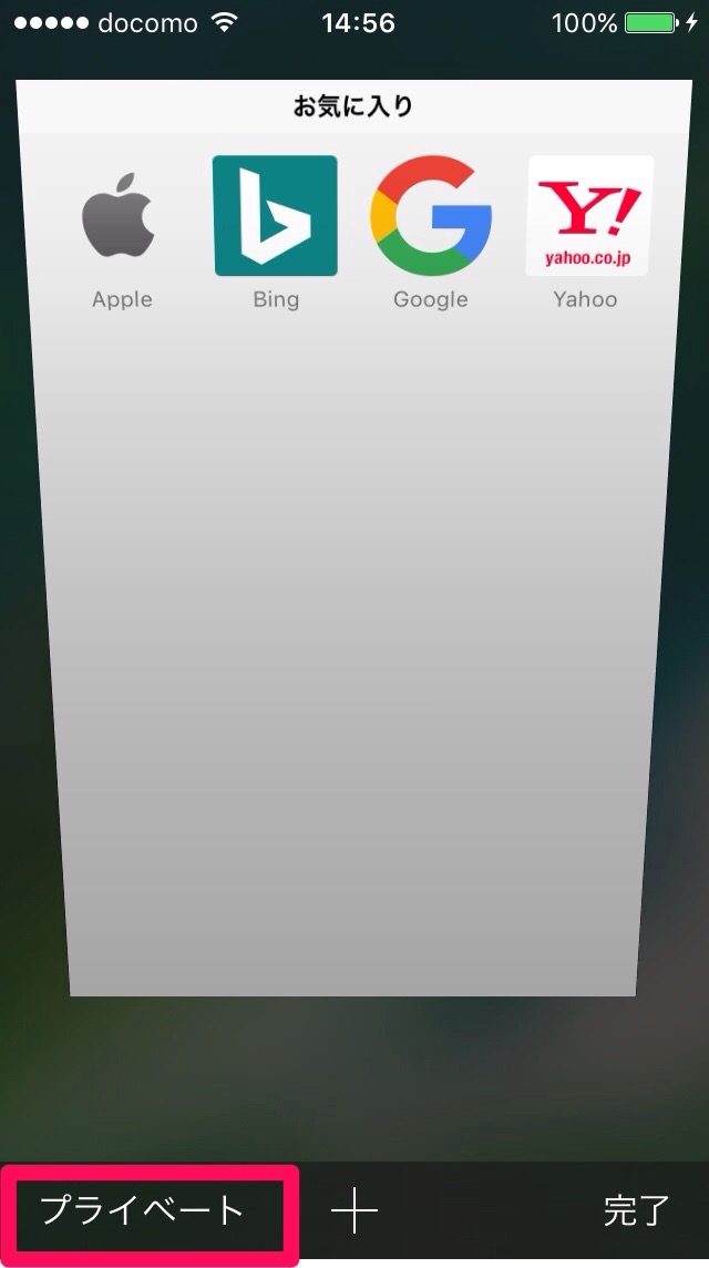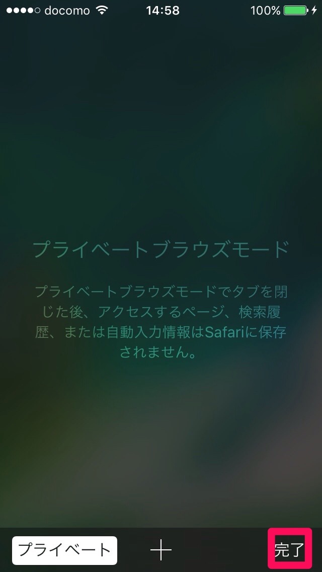 画面全体が暗くなり、プライベートアイコンが白くなったら、「完了」アイコンをタップ。