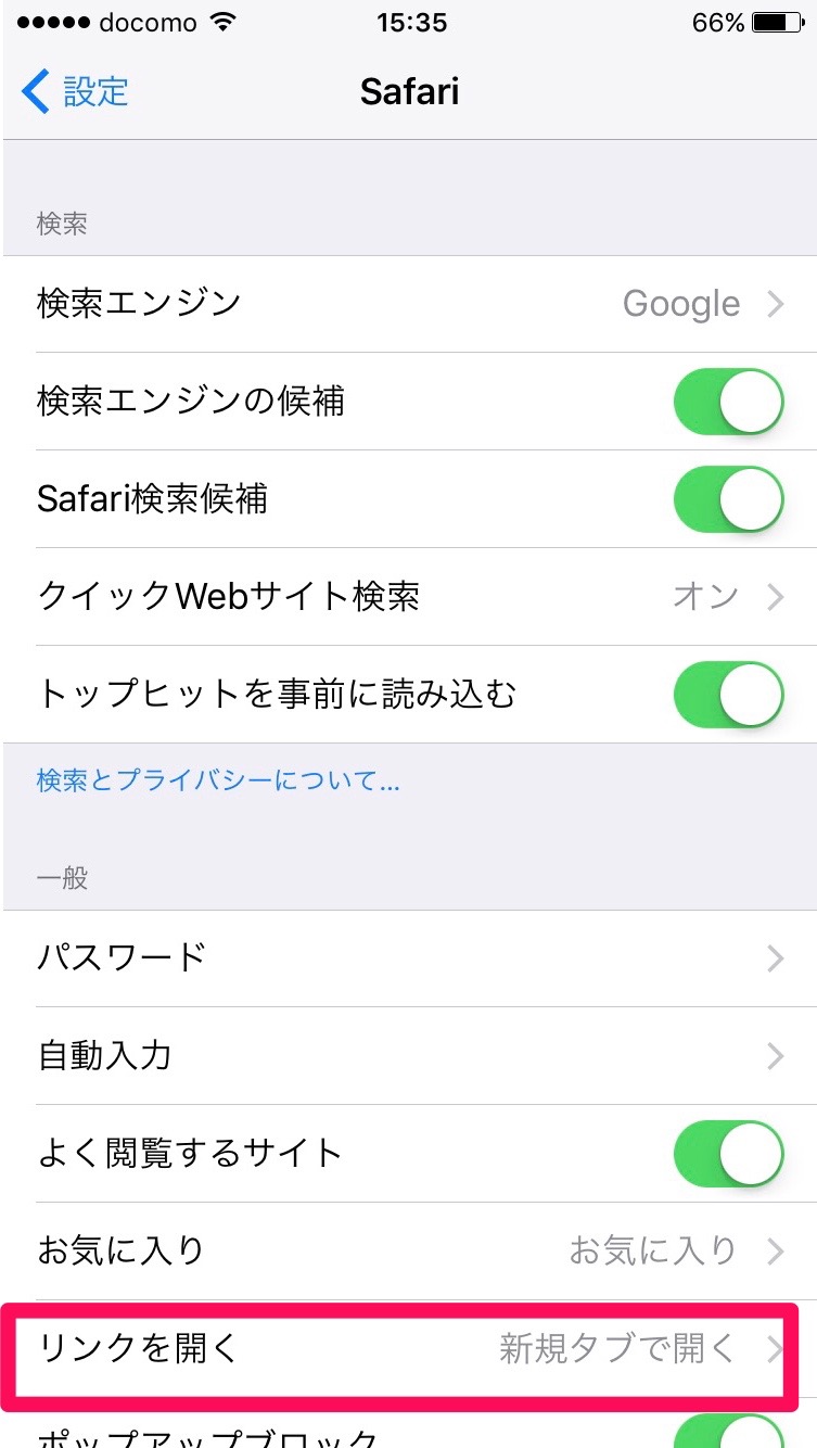 次は、「リンクを開く」の項目をタップします。